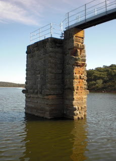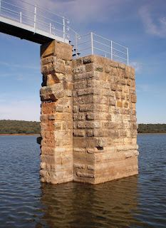 Arriba: construida inicialmente para abastecer de agua a Emérita Augusta, la Presa romana de Cornalvo da de beber en la actualidad a las localidades de Trujillanos, Mirandilla, Carrascalejo y Aljucén, convertida en la presa en uso de mayor antigüedad de Europa.