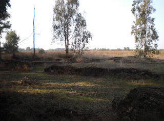 Arriba y abajo: en las inmediaciones de la parroquia acedereña, sembrados sobre un parque municipal que rodea las pistas deportivas contiguas al colegio público municipal, se conserva una colección de sillares graníticos, algunos de ellos ornamentados, recuerdos tanto de la primitiva estructura con que antaño contó el principal monumento de la localidad, como de aquel devastador cataclismo que los arrancó de la armazón a la que daban forma y para los que fueron diseñados y destinados.