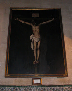 Arriba: datado en 1.636, durante la época dorada del pintor extremeño, el conocido como Cristo de Llerena formaría parte de un desaparecido retablo encargado al artista fuentecanteño para ser colocado en el altar mayor de la llerenense Iglesia de Nuestra Señora de la Granada, templo donde aún se conserva la obra, recuerdo del paso de Zurbarán por la ciudad que fuera sede de su primer taller independiente.