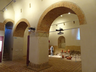 Abajo: los dos capiteles hispano-visigodos, reconvertidos en pilas de agua bendita, permanecen junto a los pilares que sostienen el coro de la conocida como "Catedralina" brocense, templo declarado Monumento Nacional en 1.988.